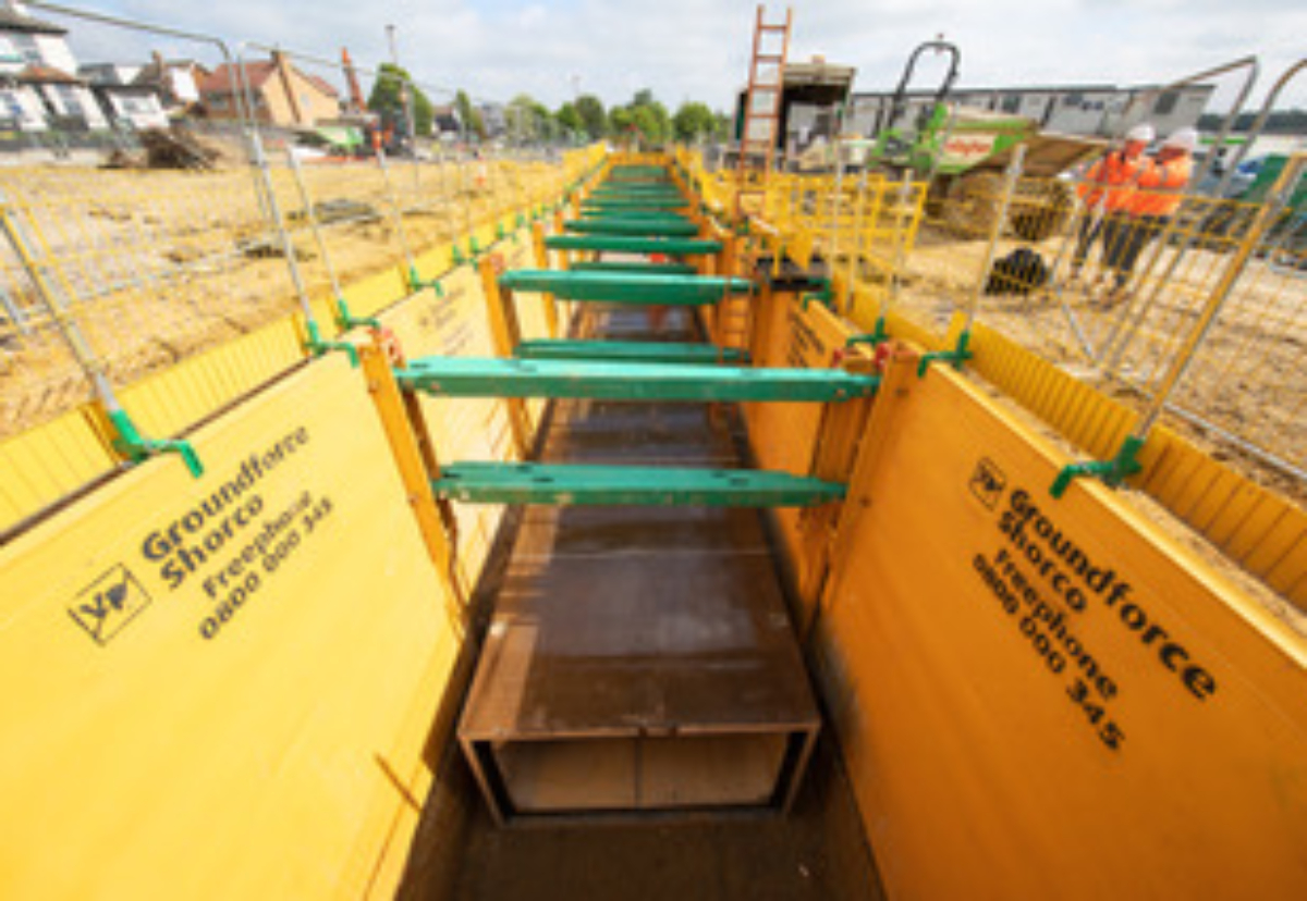 Along with the trench boxes, Groundforce Shorco has also supplied ancillary equipment including its Edgesafe safety barrier which sits on top of the trench boxes to guard against the risk of falls into the excavation.